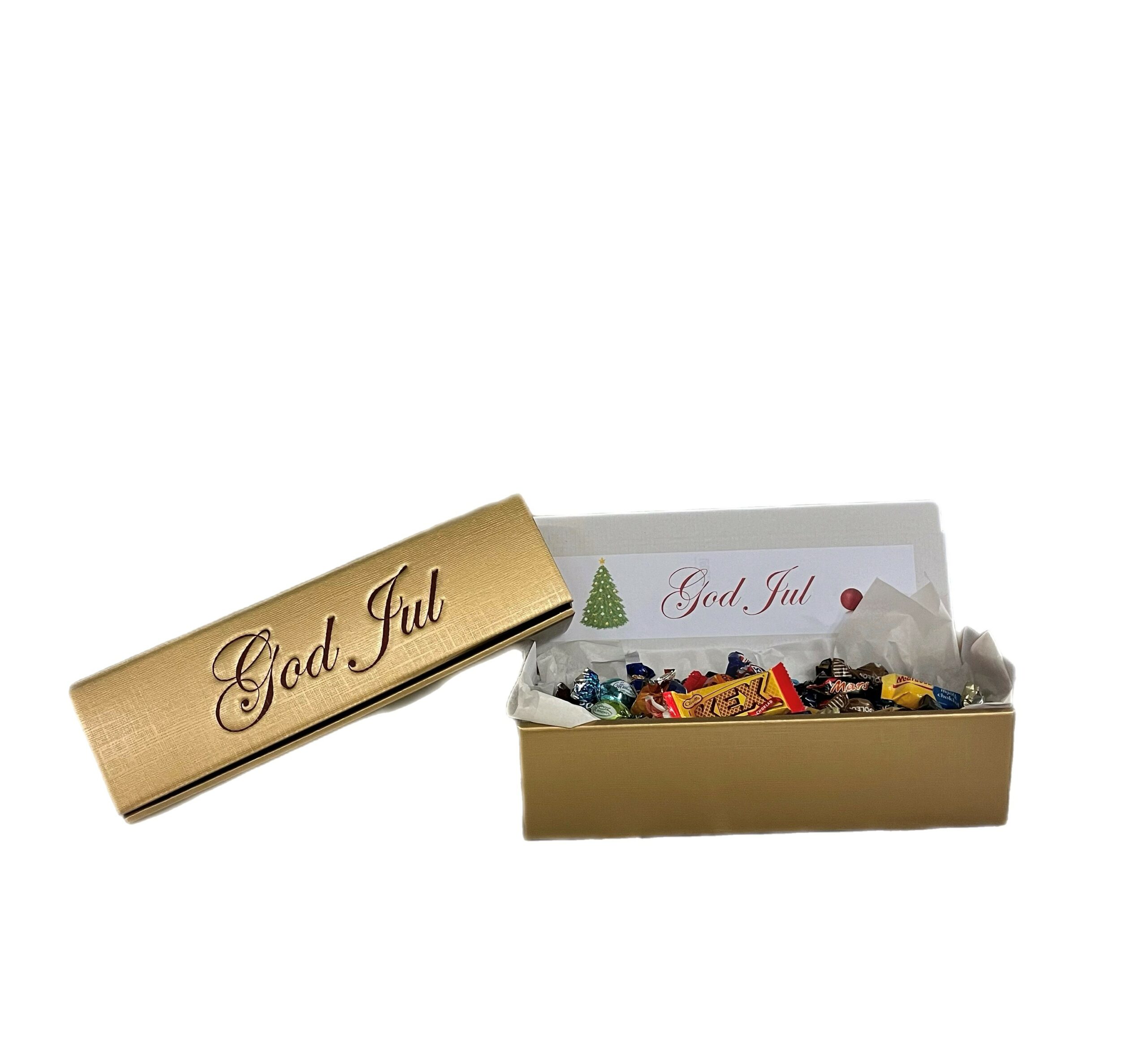 Guldlåda där vi har valt ut de godissorter som vi tycker är de absolut godaste. Allt godis är med papper på. Våra julgåvor fylls med godis av högsta kvalité av kända märken. En riktig lyxblandning med andra ord.