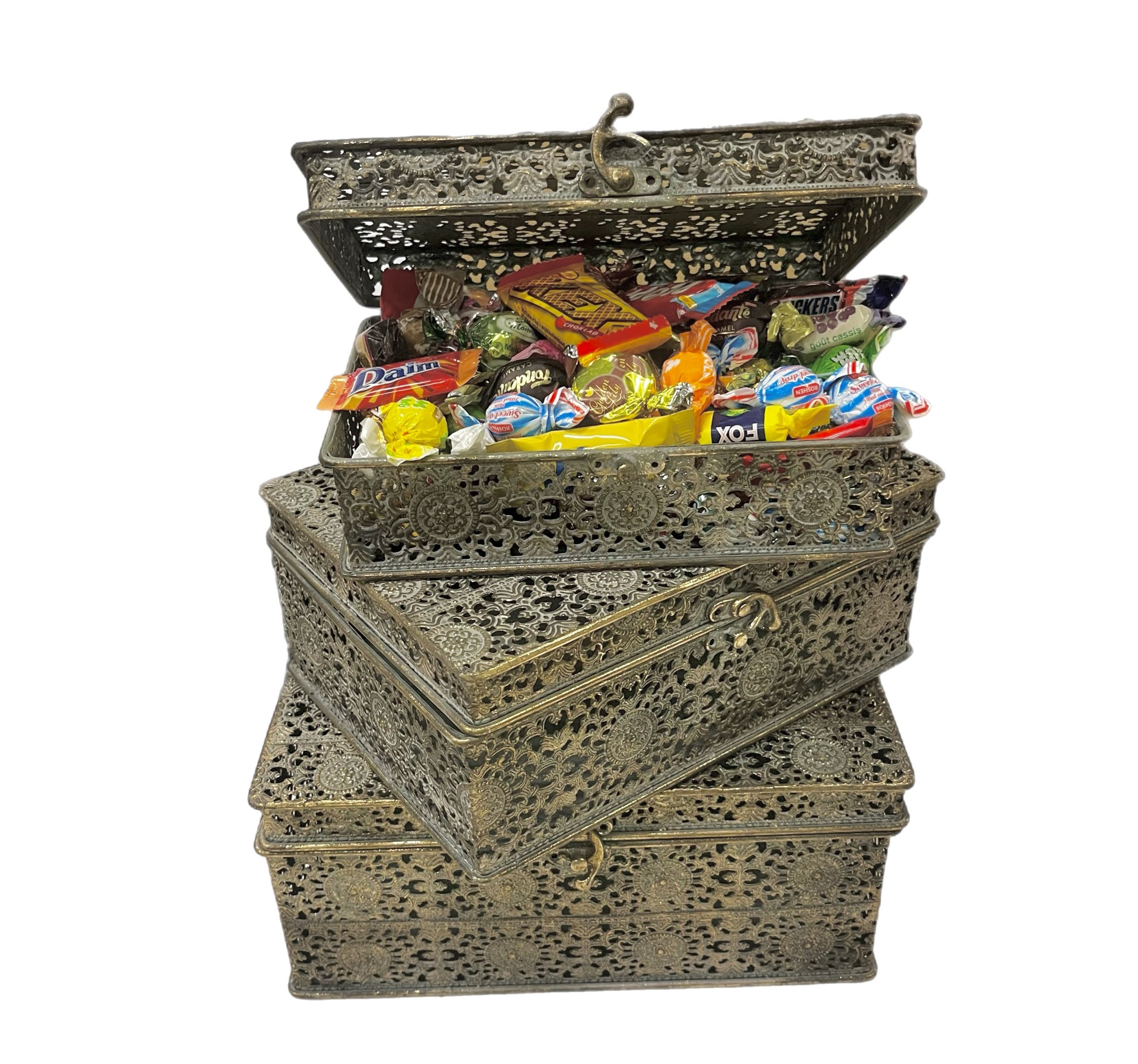 Exklusiv kista i metall där vi har valt ut de godissorter som vi tycker är de absolut godaste. Allt godis är med papper på. Våra kistor fylls med godis av högsta kvalité av kända märken. En riktig lyxblandning med andra ord.