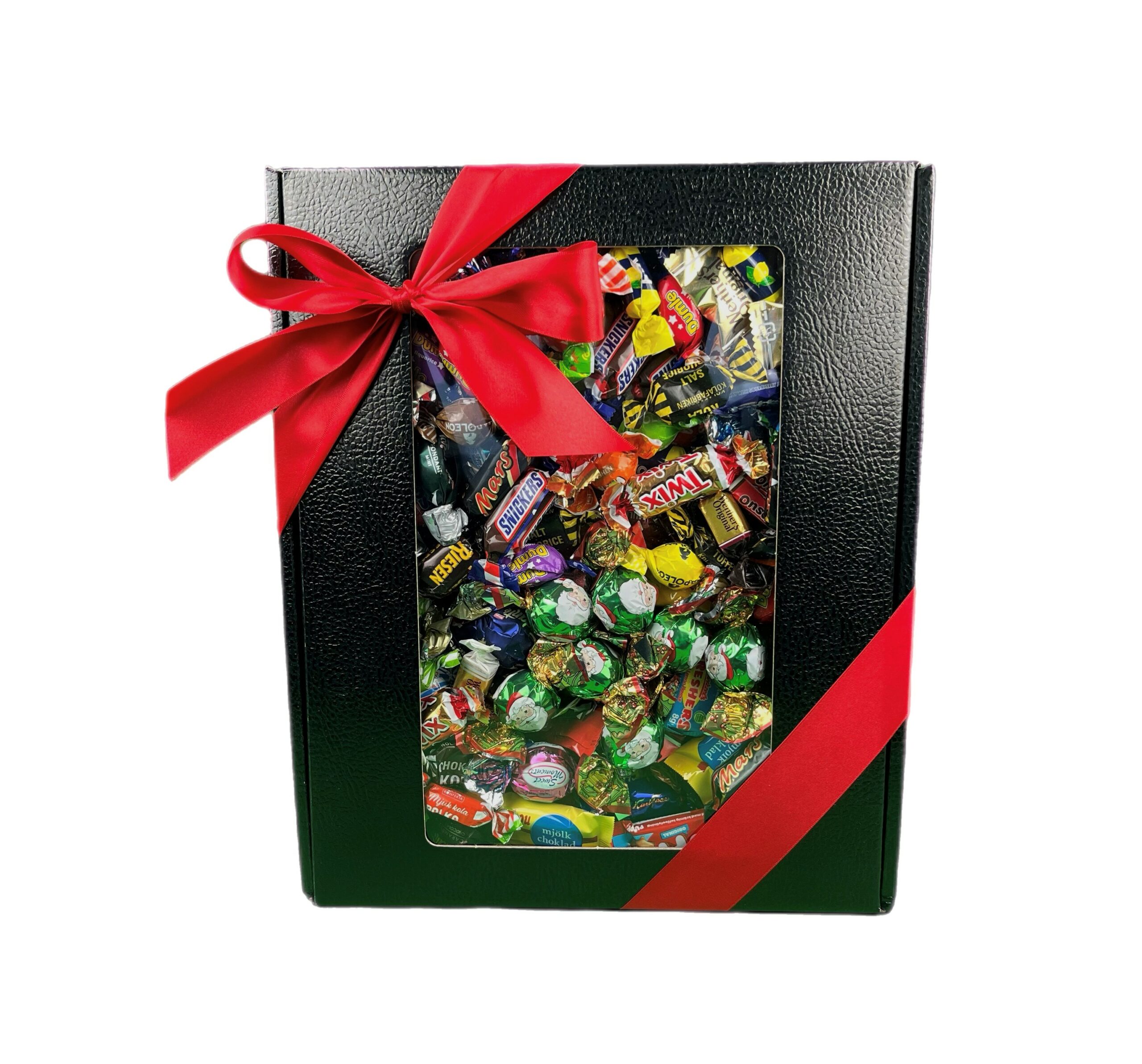 Godislåda med fönster, där vi har valt ut de godissorter som vi tycker är de absolut godaste. Allt godis är med papper på. Vår jullåda fylls med godis av högsta kvalité av kända märken. En riktig lyxblandning med andra ord.