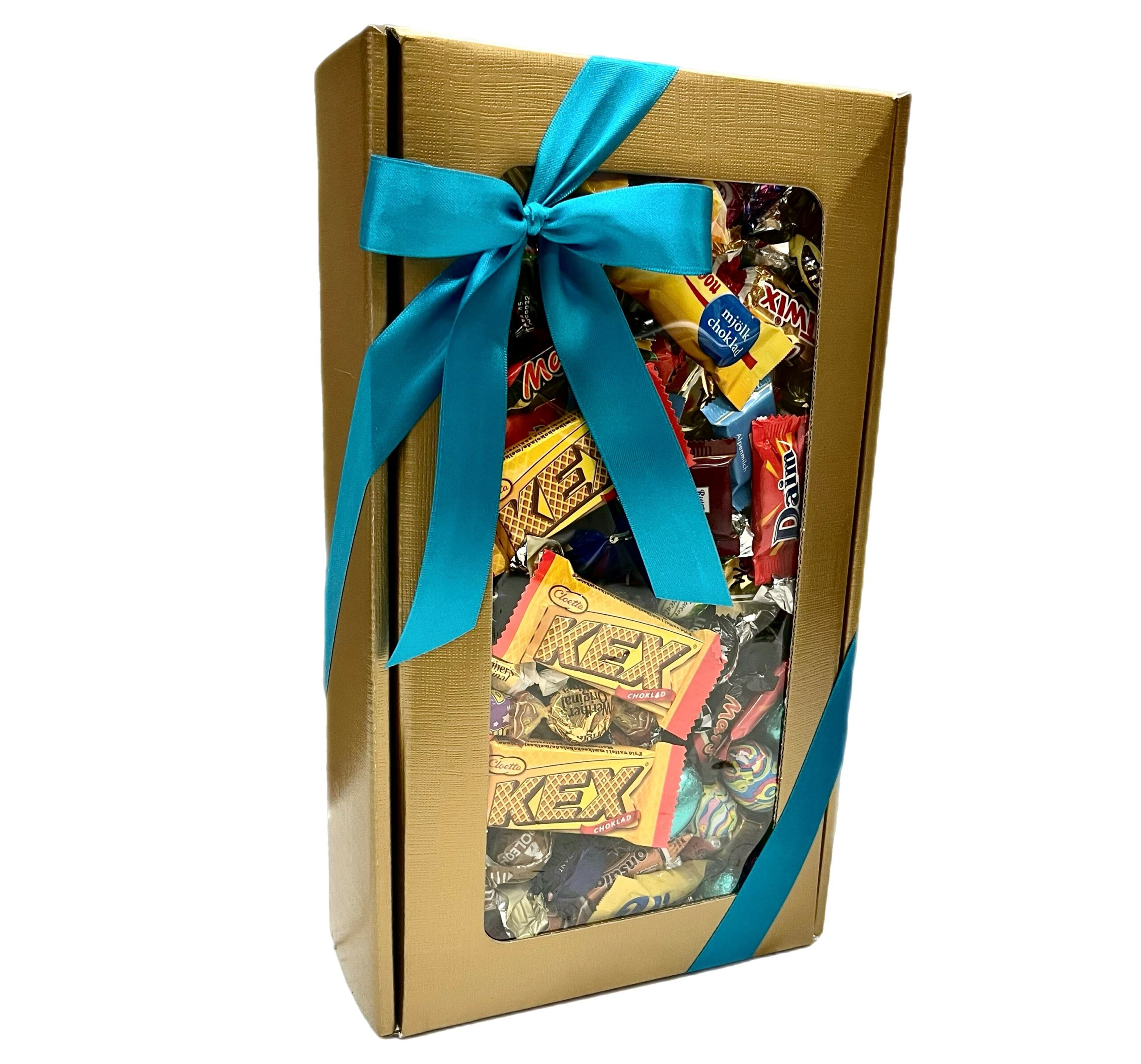 Guldlåda, där vi har valt ut de godissorter som vi tycker är de absolut godaste. Allt godis är med papper på. Våra påskgåvor fylls med godis av högsta kvalité av kända märken. En riktig lyxblandning med andra ord.