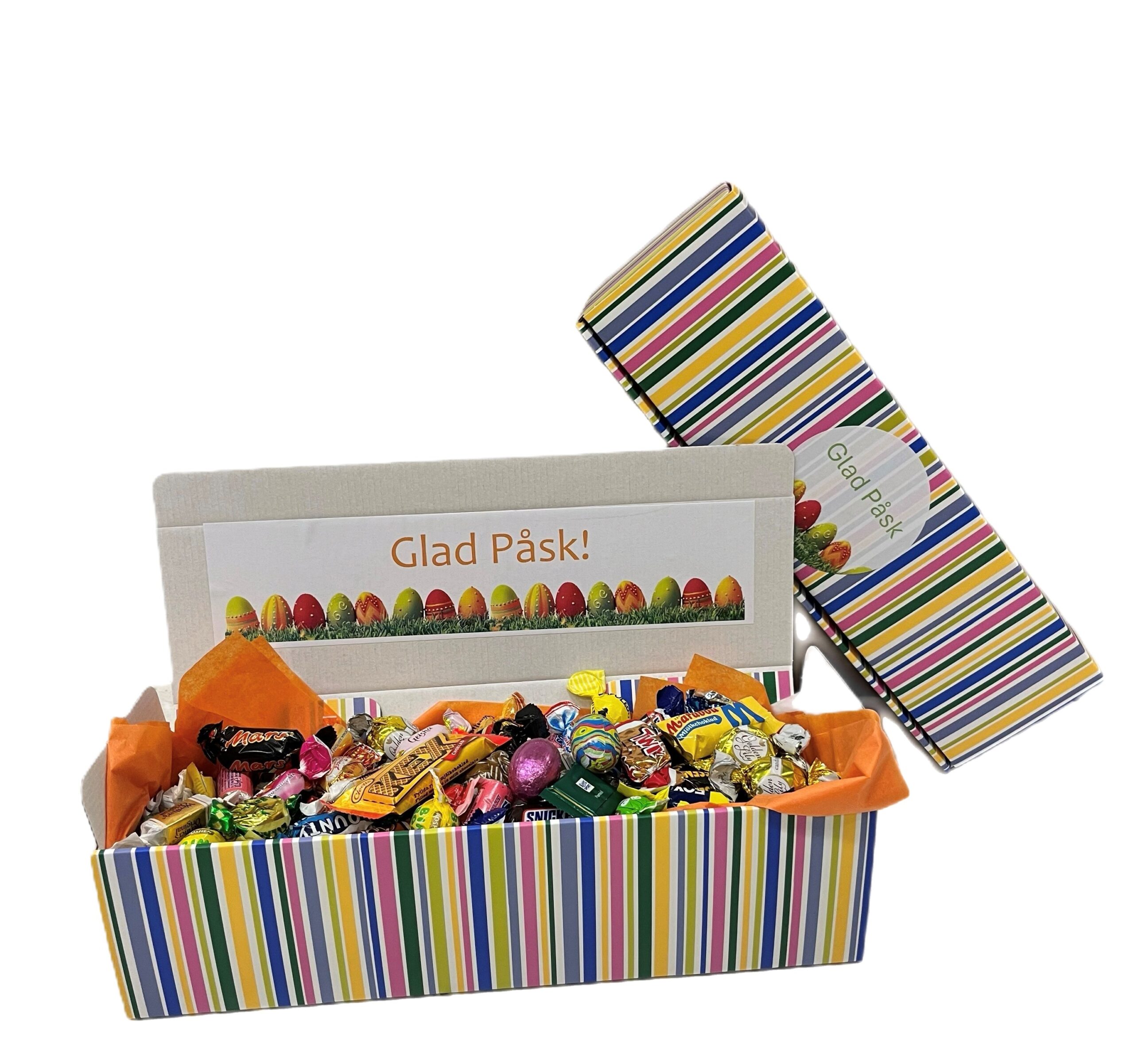 Påsklåda randig! När man öppnar vår godisbox blir man alltid lika överraskad. Hur har man fått i så mycket godis?