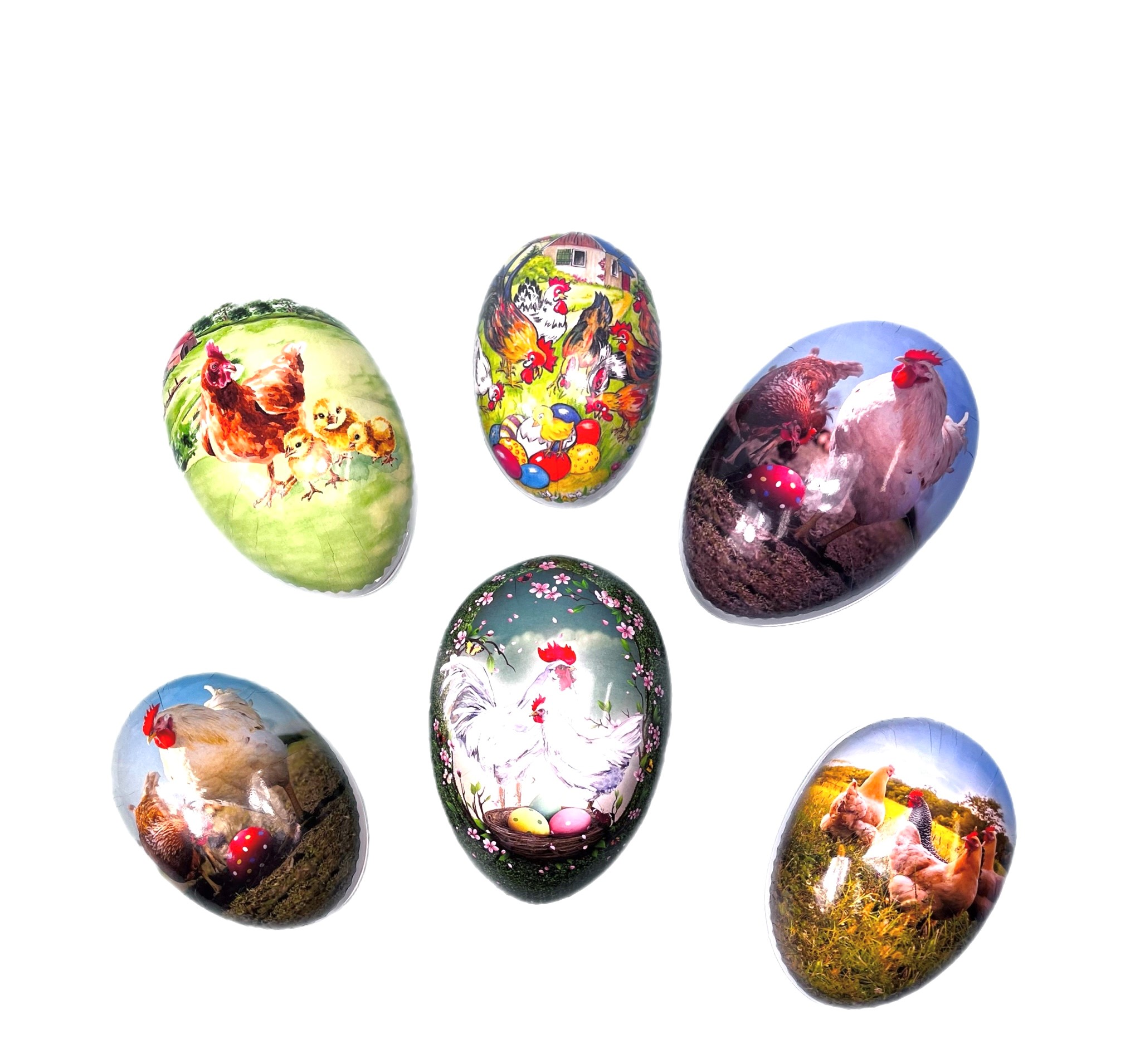 Påskägg kyckling. Olika traditionella motiv. 15cm 400g. Art 11015