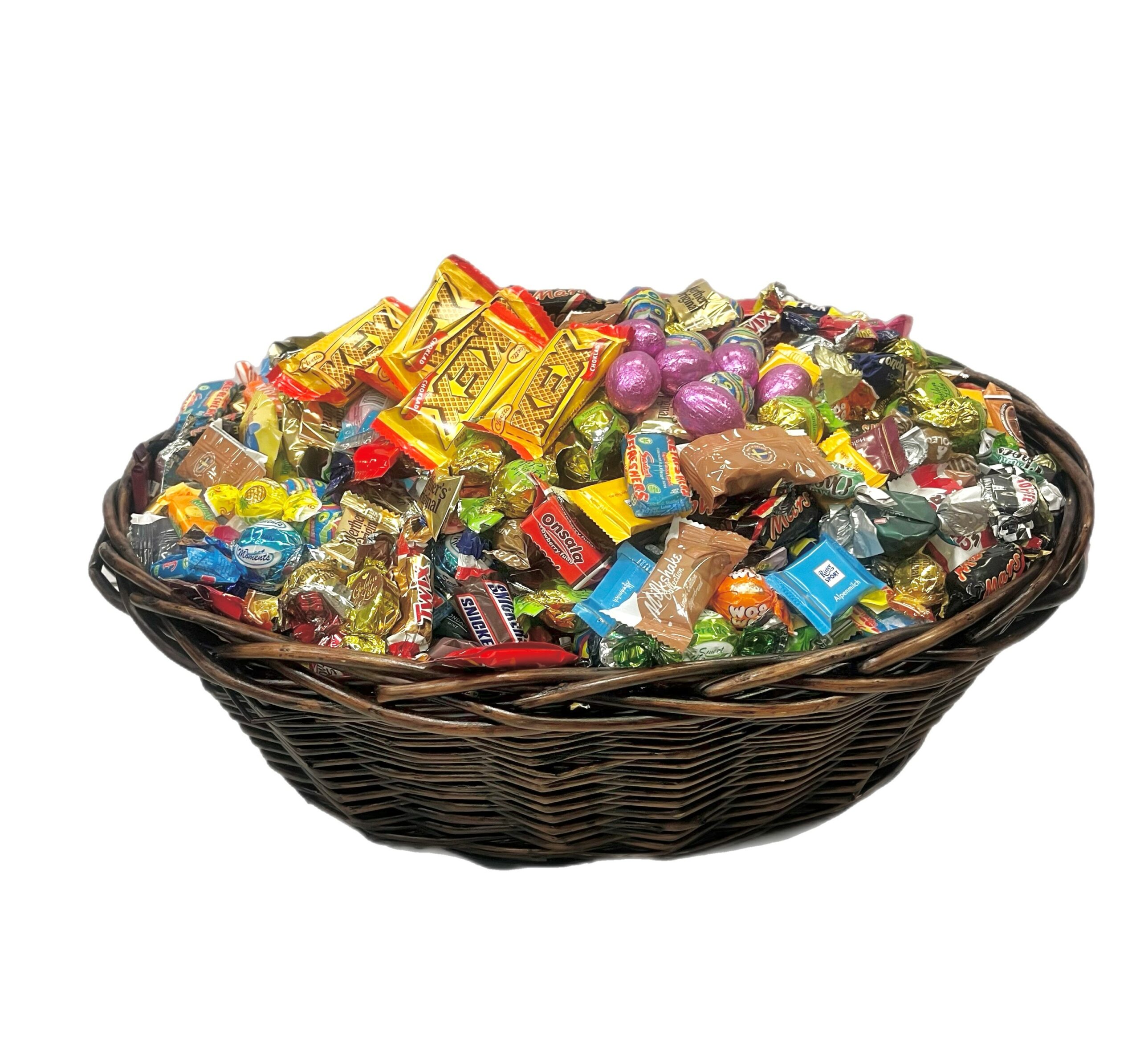 Vi har valt ut de godissorter som vi tycker är de absolut godaste. Allt godis är med papper på för fräschhetens skull. Våra påskkorgar fylls med godis av högsta kvalité av kända märken. En riktig lyxblandning med andra ord.