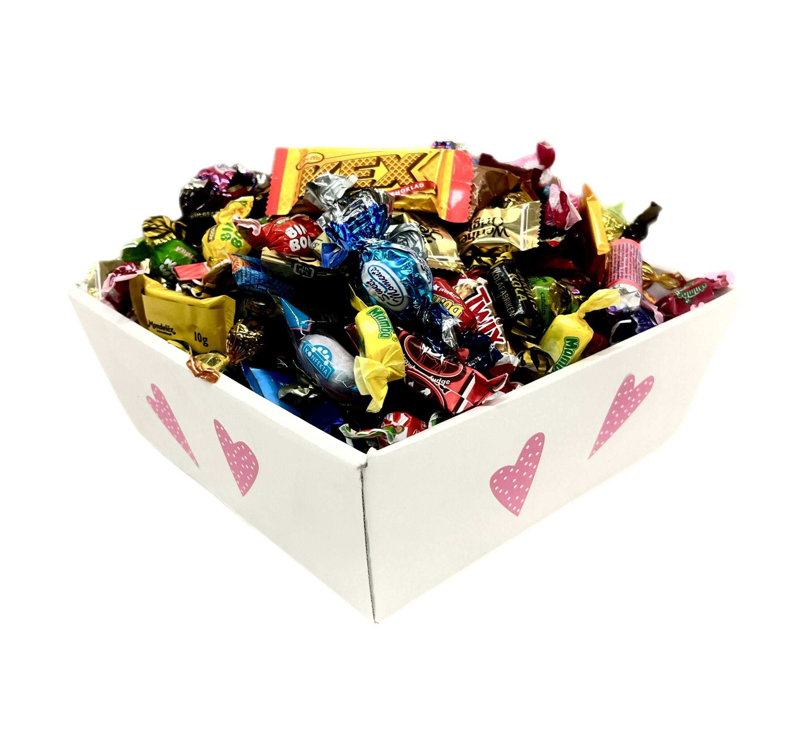 Här har vi har valt ut de godissorter som vi tycker är de absolut godaste. Allt godis är med papper på. Våra Alla Hjärtans presenter fylls med godis av högsta kvalité av kända märken. En riktig lyxblandning med andra ord.
